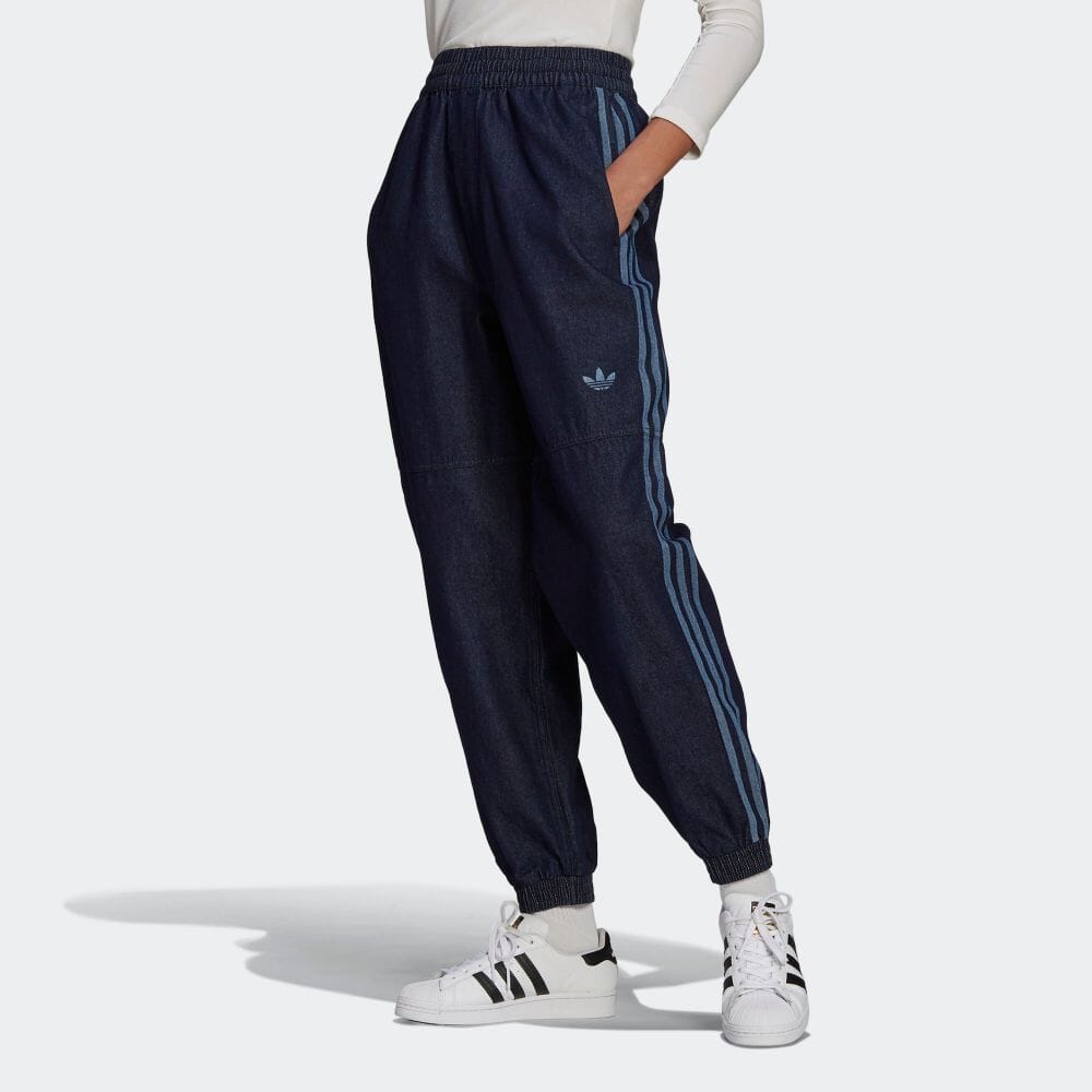 アディダスの定番であるクラシックなトラックパンツをベースに、本物のデニムが持つ丈夫さと、しっかりとした風合いを合わせている。