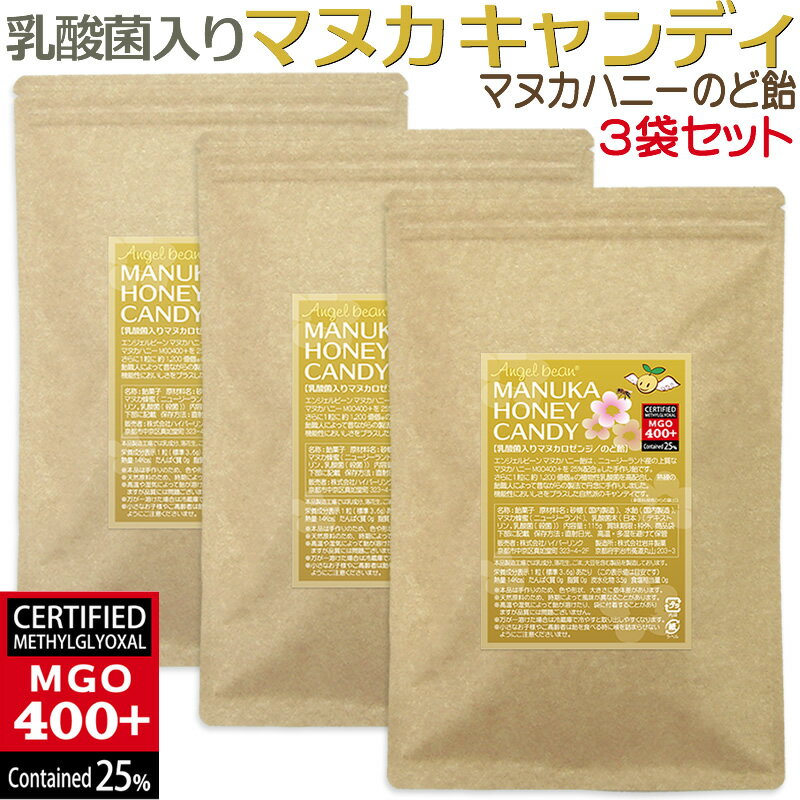 お徳用 Angelbean マヌカ・ロゼンジ MGO400+/12+ マヌカハニー25%キャンディ 乳酸菌入り のど飴 3袋セット