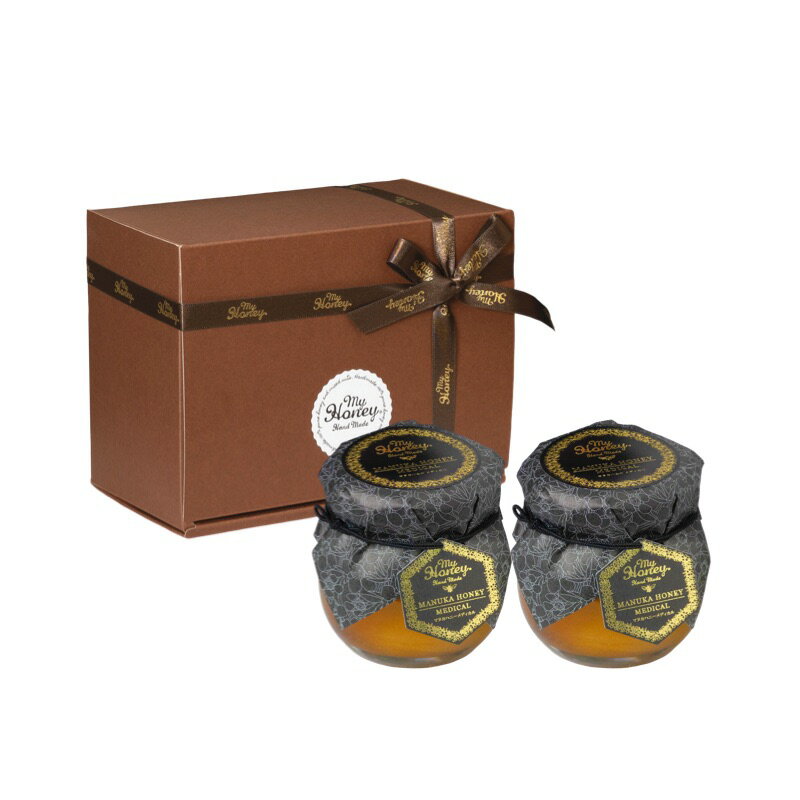【生はちみつギフト】マヌカハニーメディカル(90g)【MGO400+ (UMF20+相当)】× 2 / ブラウンギフトボックス(S) + MYHONEYロゴ入りリボン