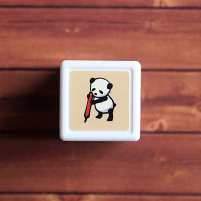 パンダ柄ミニスタンプ浸透印〈こどものかお〉連絡帳や付箋にちょうどいいサイズインクカラーレッド