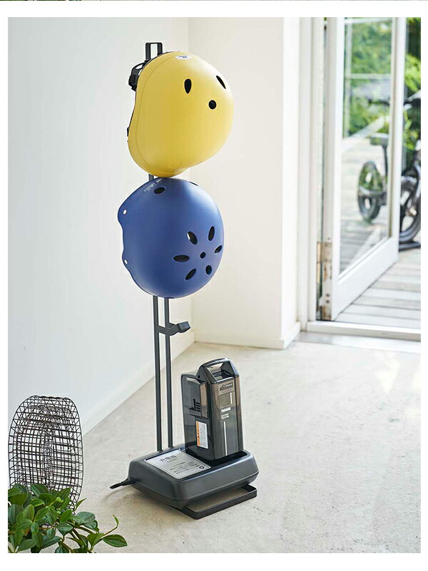 ヘルメットを収納したまま電動自転車のバッテリーを充電できます。