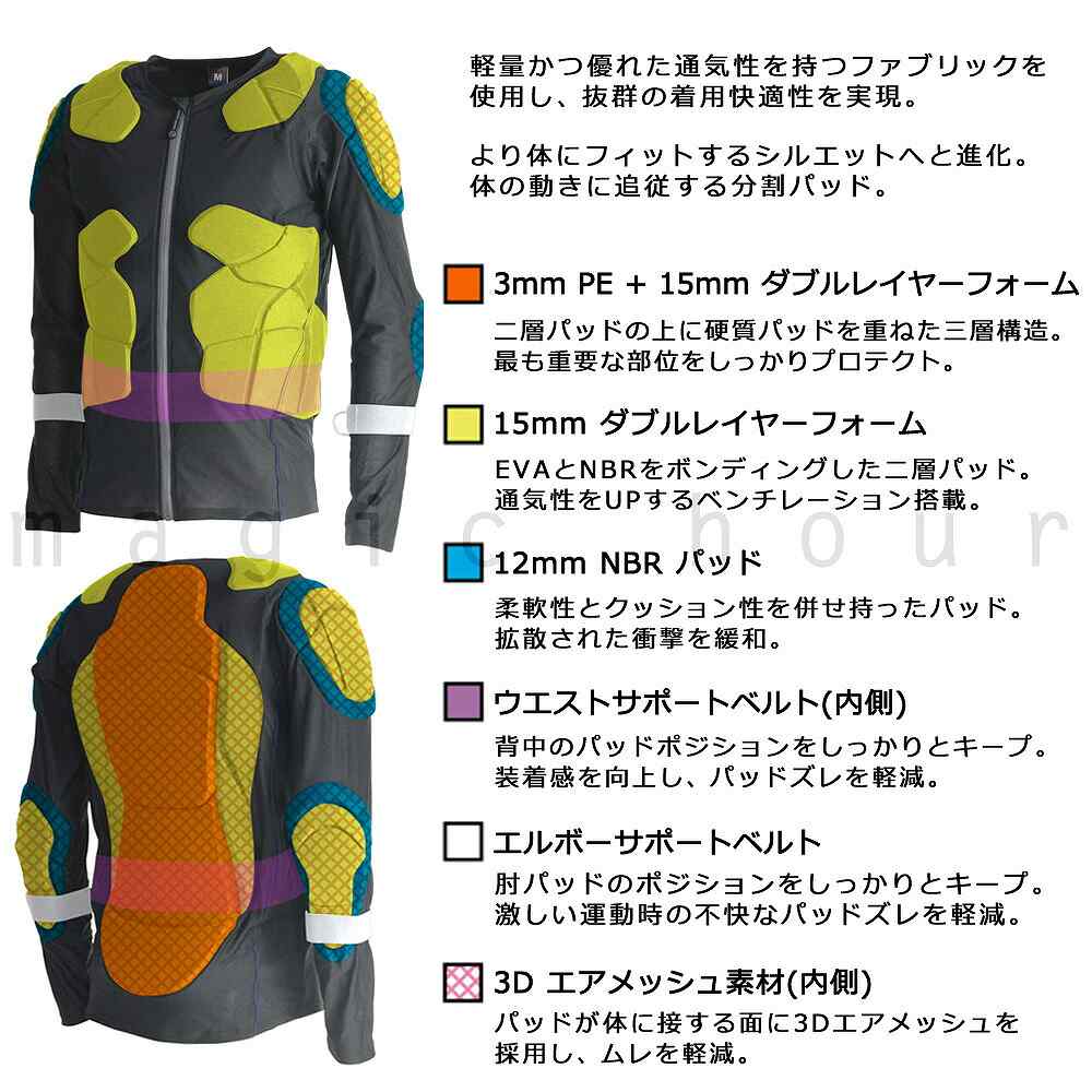 ・パットの取り外し可能(手洗いで洗濯してください) 検) スケート スケボー 自転車 キッズ 手首 衝撃 インナー パンツ ロング ショート ガード サポーター けつパッド EVA 肘 ひじ エルボーパッド 上半身 スキンズ 大人 伸縮性 メッシュ north peak ノースピーク ARK エーアールケー 鎧武者 ヨロイ EVA フルジップ パッド キッカー 吸汗 速乾 ドライ メッシュ 軽量スノーボード プロテクター メンズ レディース ボディープロテクター ジャケット 大人用 長袖 スポーツ ウェア 3レイヤー 速乾 MNP-1147 商品詳細 ◆ スノーボード プロテクター メンズ レディース 衝撃吸収 ボディープロテクター ジャケット インナー ウエア ◆ スキー、スノボのプロテクターブランドが提案する上半身を守るフルジップタイプの高機能プロテクター! 軽量かつ優れた通気性と計算された美しいフォルムはフィット感も◎ 厚さ18mmの3層構造、MULTIPLE PROTECTION SYSTEMが背骨への衝撃を大幅に軽減♪